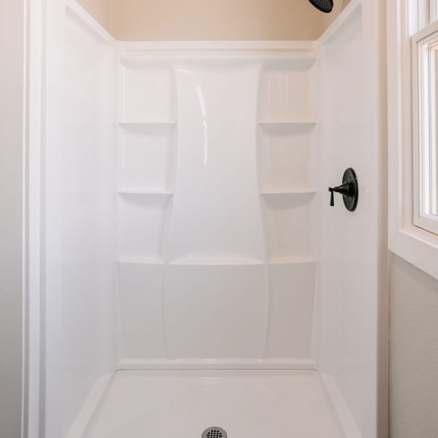 Bathroom: 32” x 32” shower, toilet with RV septic flush out, sink with faucet, pocket door, contemporary fixtures, ceiling fan/vent.